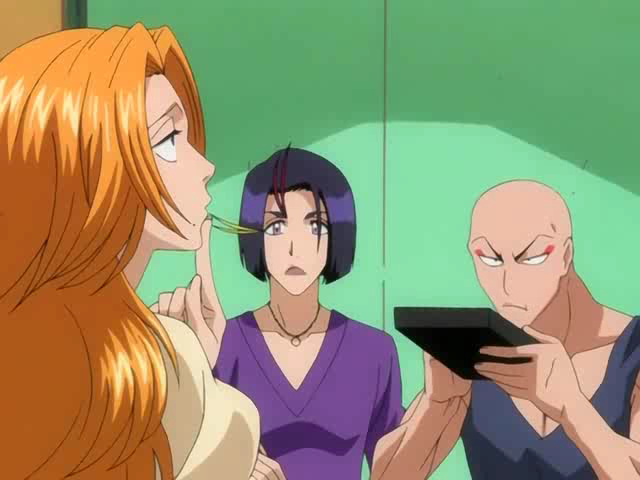 But it's back to where we left off, with the creepy flute sound hanging in the air. OMG he called her Rangiku san for once.