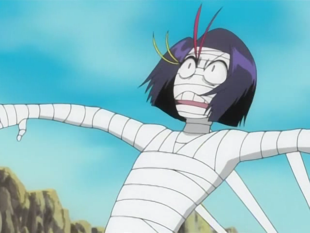 Ururu knows how to headlock. Hahahaha, Yumi-mummmy! Although… how did they suddenly go from pulling on his bandages to being five metres away?