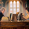 Description: the Twelfth Doctor and Bill sitting across from each other in the Twelfth Doctor's office, light streaming in from the window